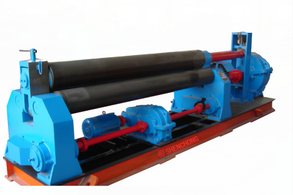 第一種是使用帶預(yù)彎功能的三輥卷板機(jī)。在卷板機(jī)上將板材頭部壓成要求的圓弧,預(yù)彎后的板材在卷板機(jī)上卷成圓形筒體;然后進(jìn)行直縫焊接、校正、無(wú)損檢測(cè)、熱處理(根據(jù)需要)。一般卷板機(jī)帶預(yù)彎功能的雖然能夠滿足要求,但是卷板機(jī)輥之間的凈空間不能滿足鋼板寬度尺寸,因此必須要大型的卷板機(jī)。