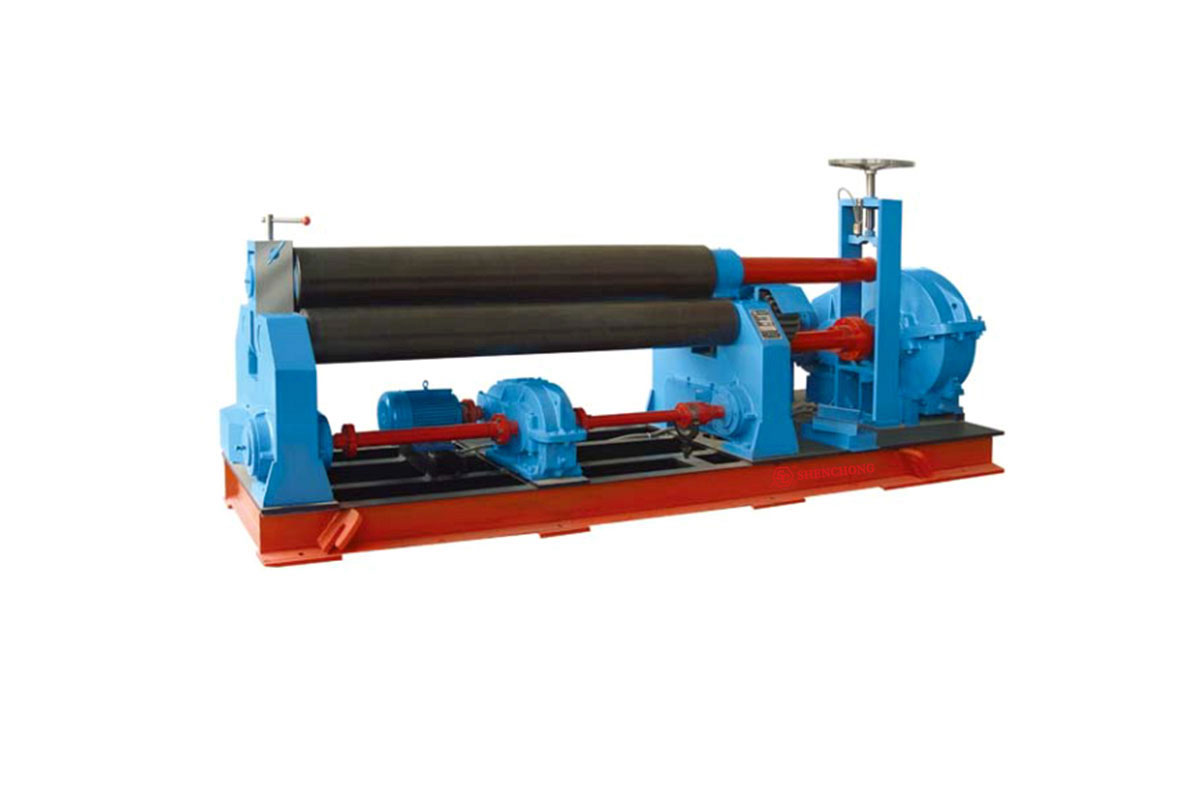 4、兩下輥固定,方便設(shè)置托輥,并可配合鼓形上輥上、下調(diào)節(jié),從薄板至厚板,卷制范圍廣,制品精度高,防止制品出現(xiàn)“束腰形”、“腰鼓形”。